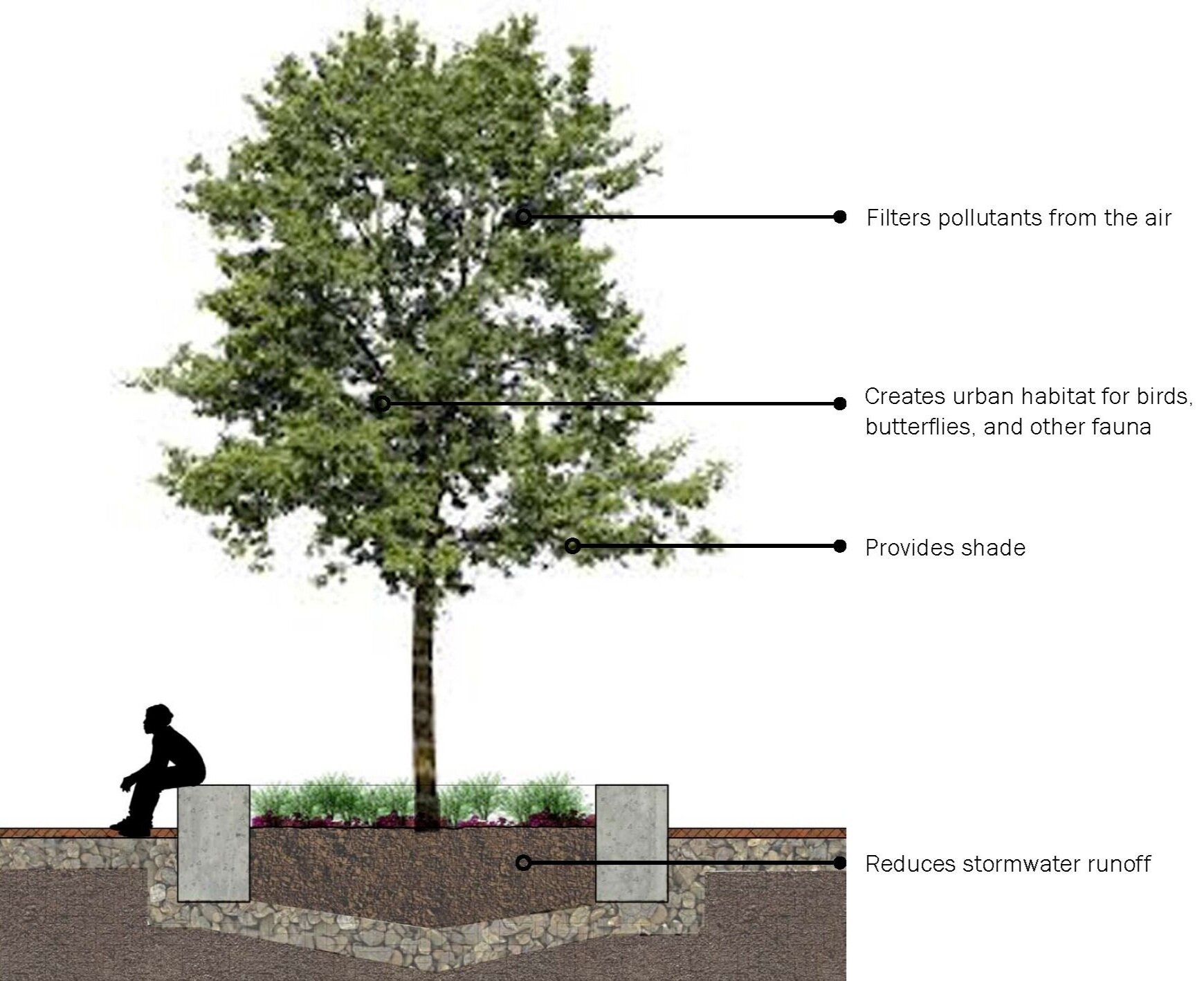 The strategic planting of trees and enhancing our tree canopy is another goal of Innovate Fulton, Inc. In addition to improving the overall look of the district, trees provide a number of other benefits.